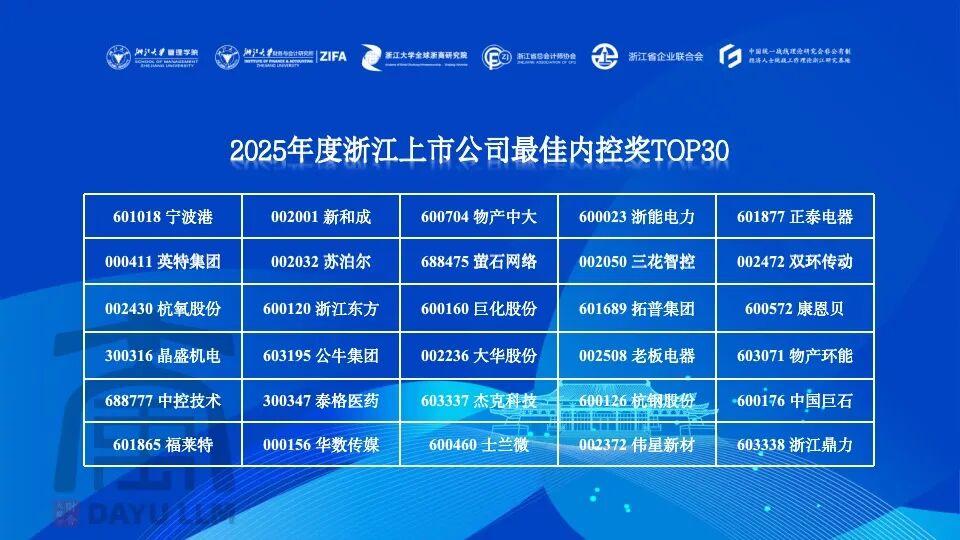 連續(xù)9年 浙江上市公司最佳內(nèi)控獎(jiǎng)TOP30 11月20日,第九屆企業(yè)高質(zhì)量發(fā)展與管理創(chuàng)新論壇在浙江大學(xué)舉辦,并揭曉2025年度浙江上市公司最佳內(nèi)控獎(jiǎng)TOP30,新和成再次上榜,連續(xù)9年獲此殊榮。 查看詳情